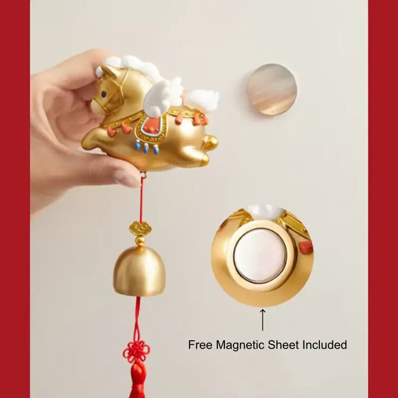 Aimant de réfrigérateur Cloche de bénédiction du Cheval d'or du Musée du Palais | Décoration et cadeau Année du Cheval