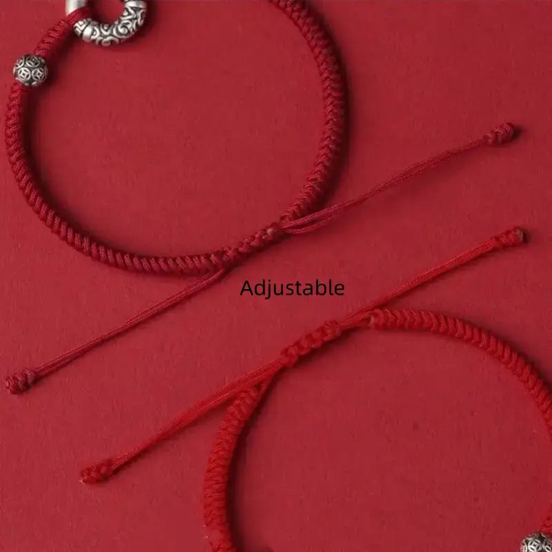 • 素材: 999 純銀 (ピースバックルとフォーチュンビーズ)、編み紐 (赤/黒/ダークレッド) - 肌に優しく、耐久性があり、色褪せしにくい。