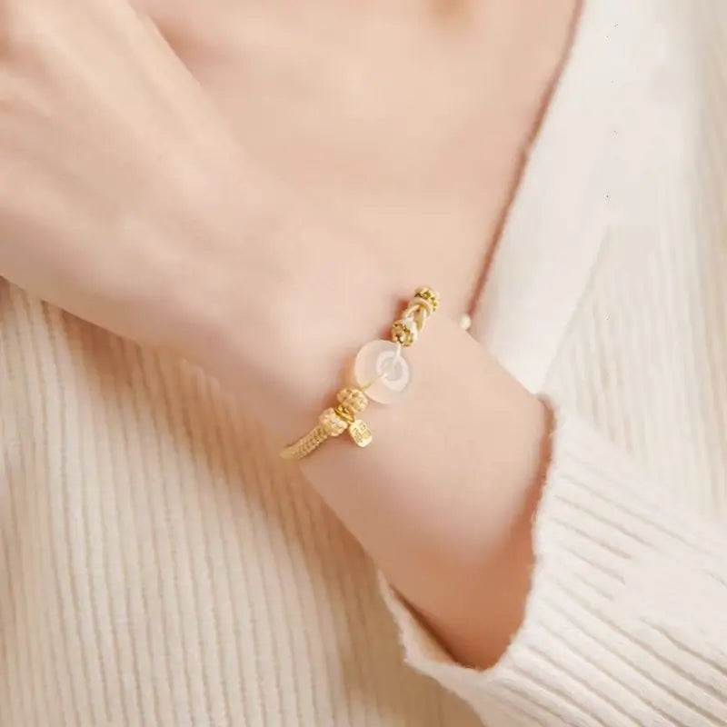 高品質の素材で作られた天然ホワイトアゲートは、温かみがあり、滑らかで繊細、肌に優しく、長時間の着用でも快適です。925シルバーメッキのゴールドブレッシングペンダントは、明るく贅沢な光沢を放ち、色褪せしにくいです。マルチカラーの編み紐は丈夫で柔らかく、耐久性があり、切れにくく、ほとんどの手首のサイズにフィットし、カジュアルにもエレガントにも、様々な日常の装いに合わせやすいです。
