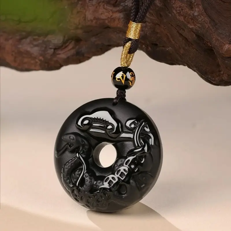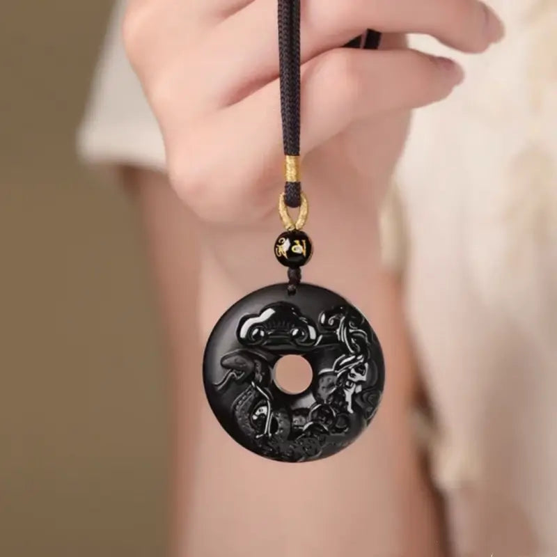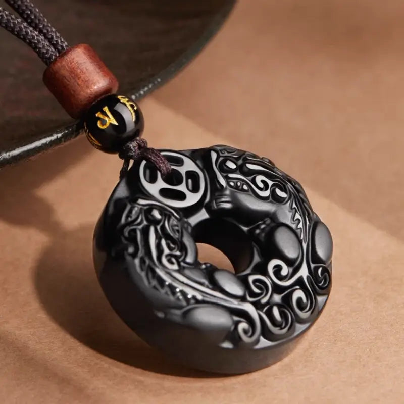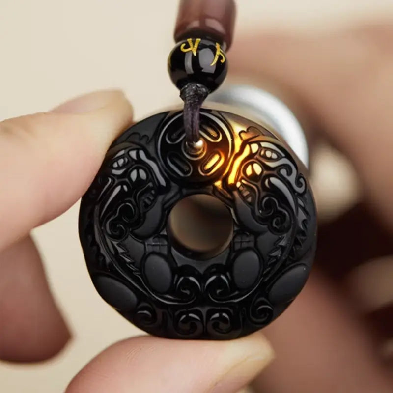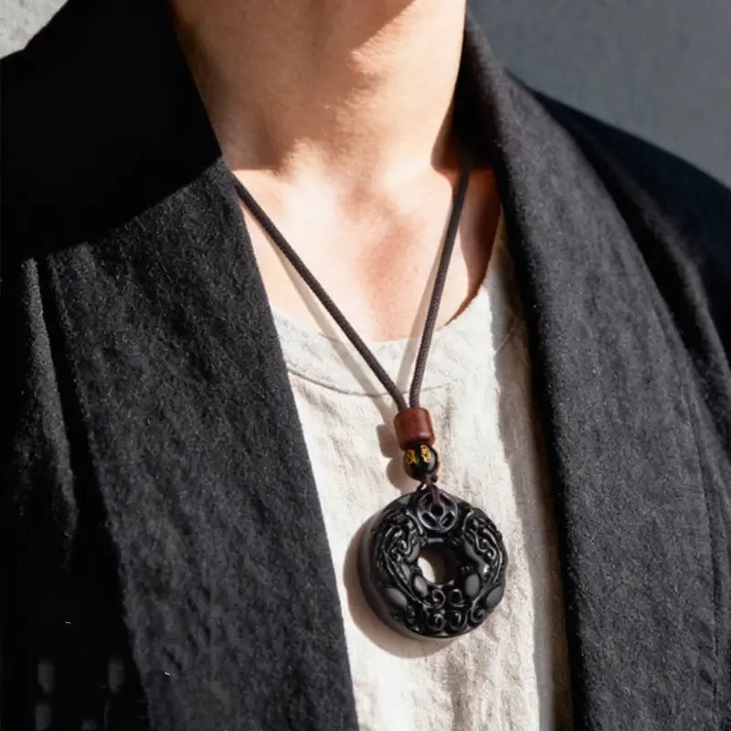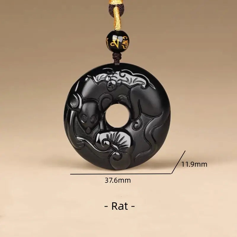天然黒曜石の十二支風平和バックルネックレス|特別なお守り
